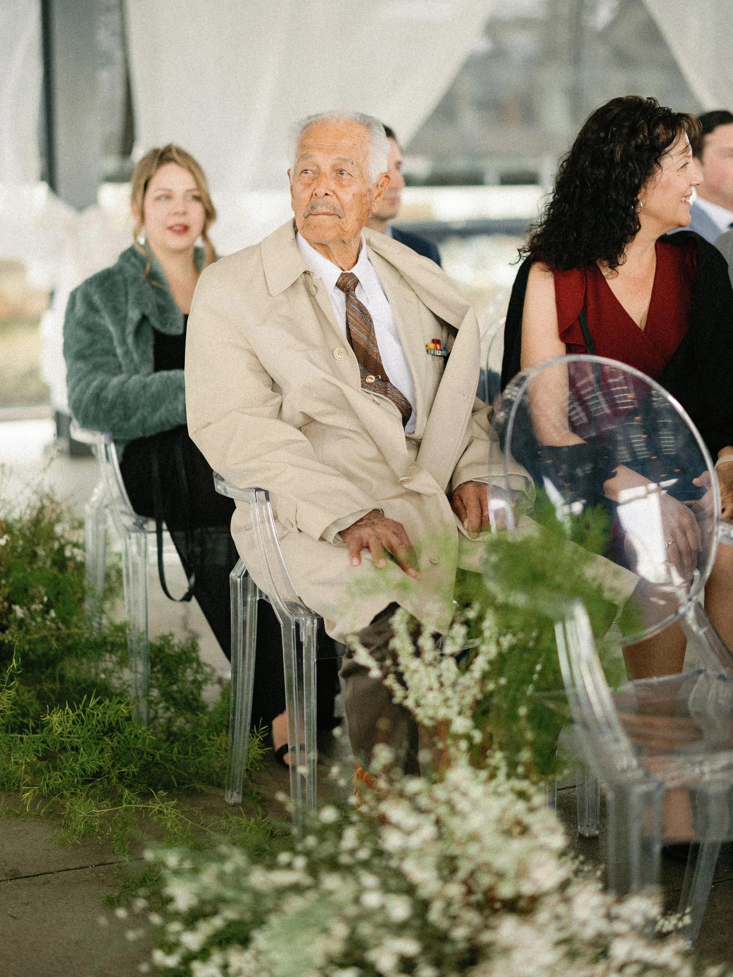 Coasterra is a waterfront venue with stunning views of San Diego Bay, featuring bold, industrial lines right at the water’s edge. To balance that, we aimed to create something organic yet modern to complement the space. With a focus on fine textures in white and green, we wanted to add an extra element—jasmine. As guests walked in, the scent of blooming jasmine filled the air—a detail we hope A & O, and everyone present, will always remember from the day.