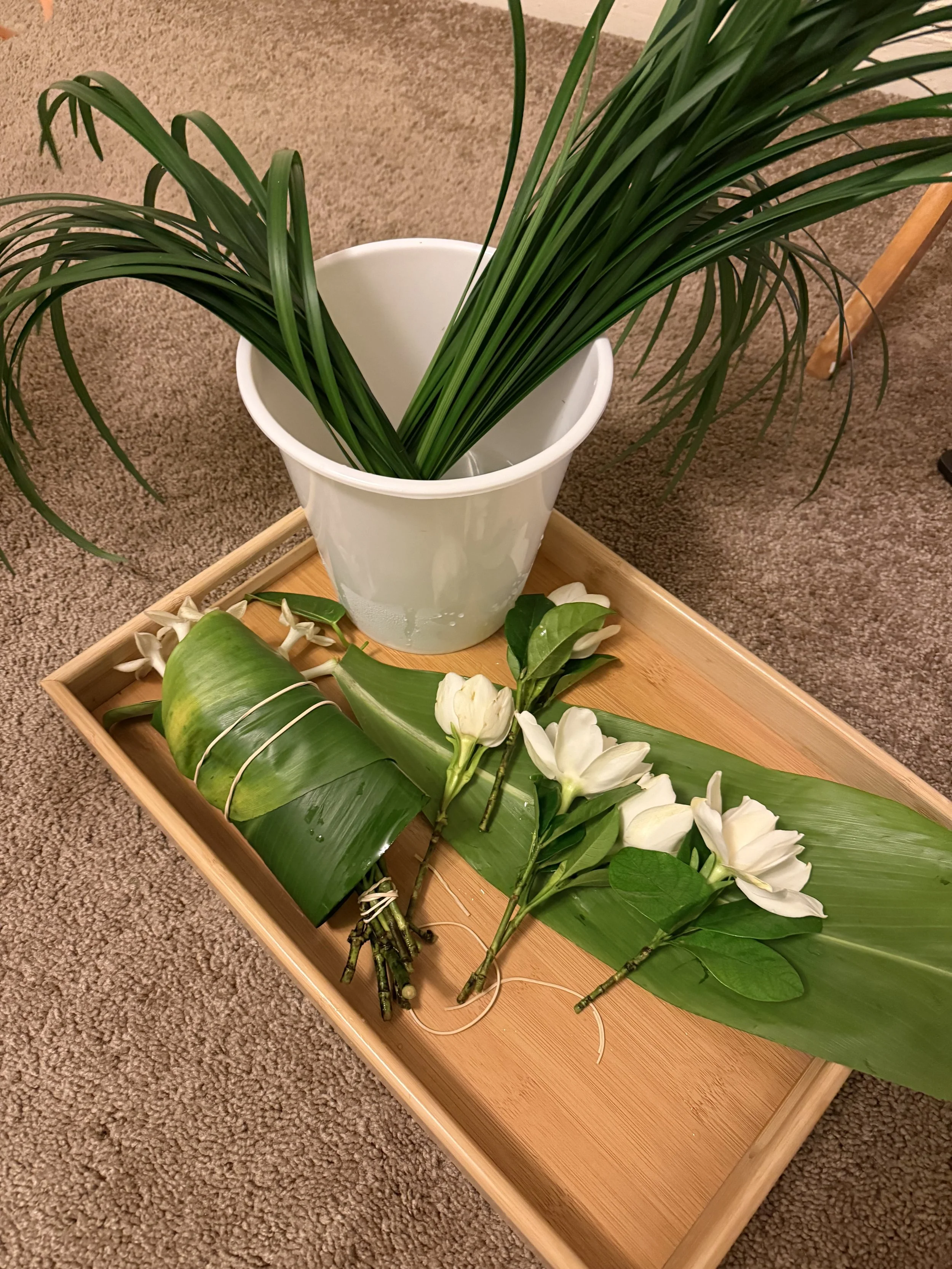 With both the bride and groom being from Hawaiʻi, we wanted the design to feel familiar but not expected. The bridal bouquet became a natural place to express that balance.