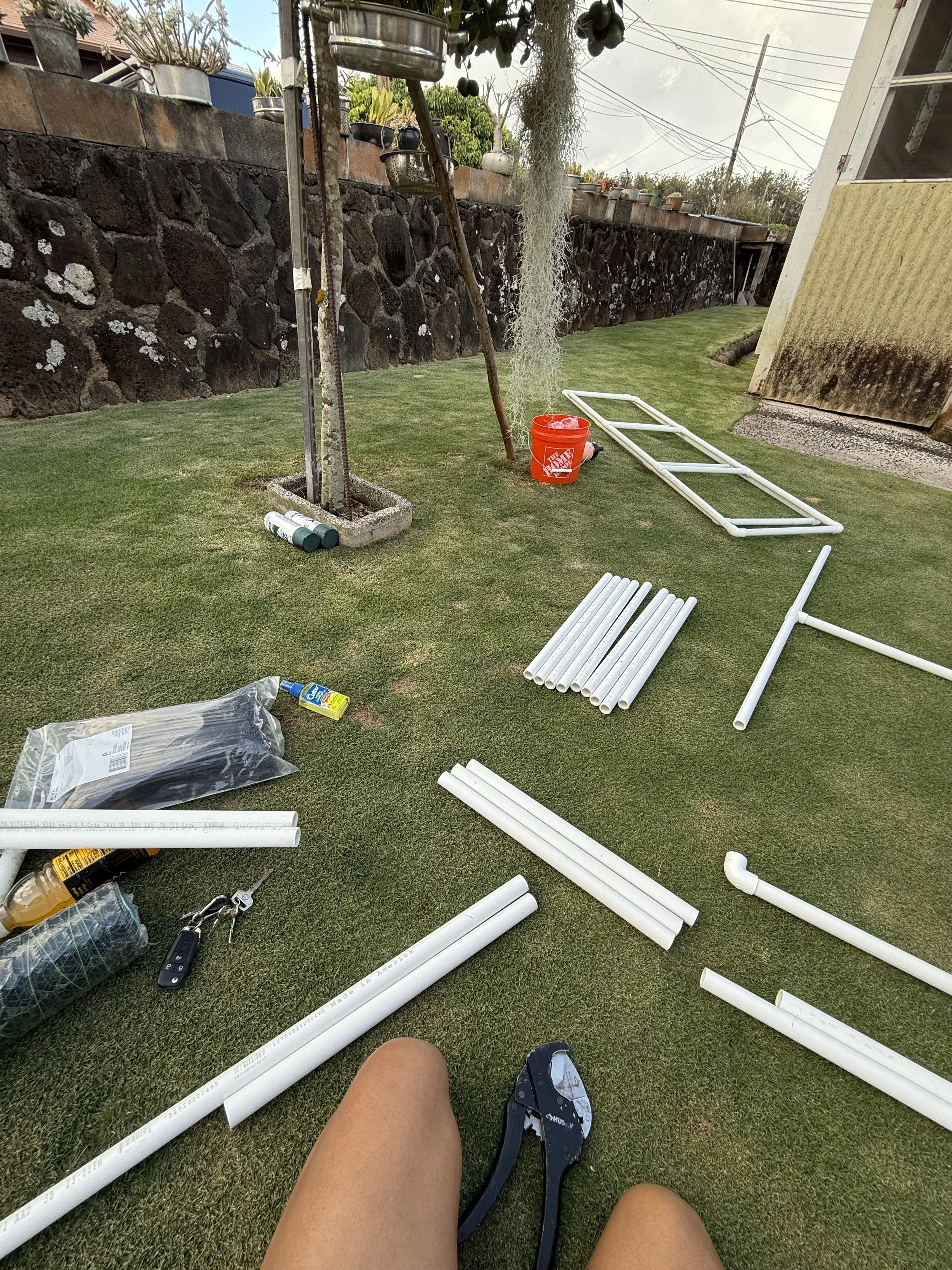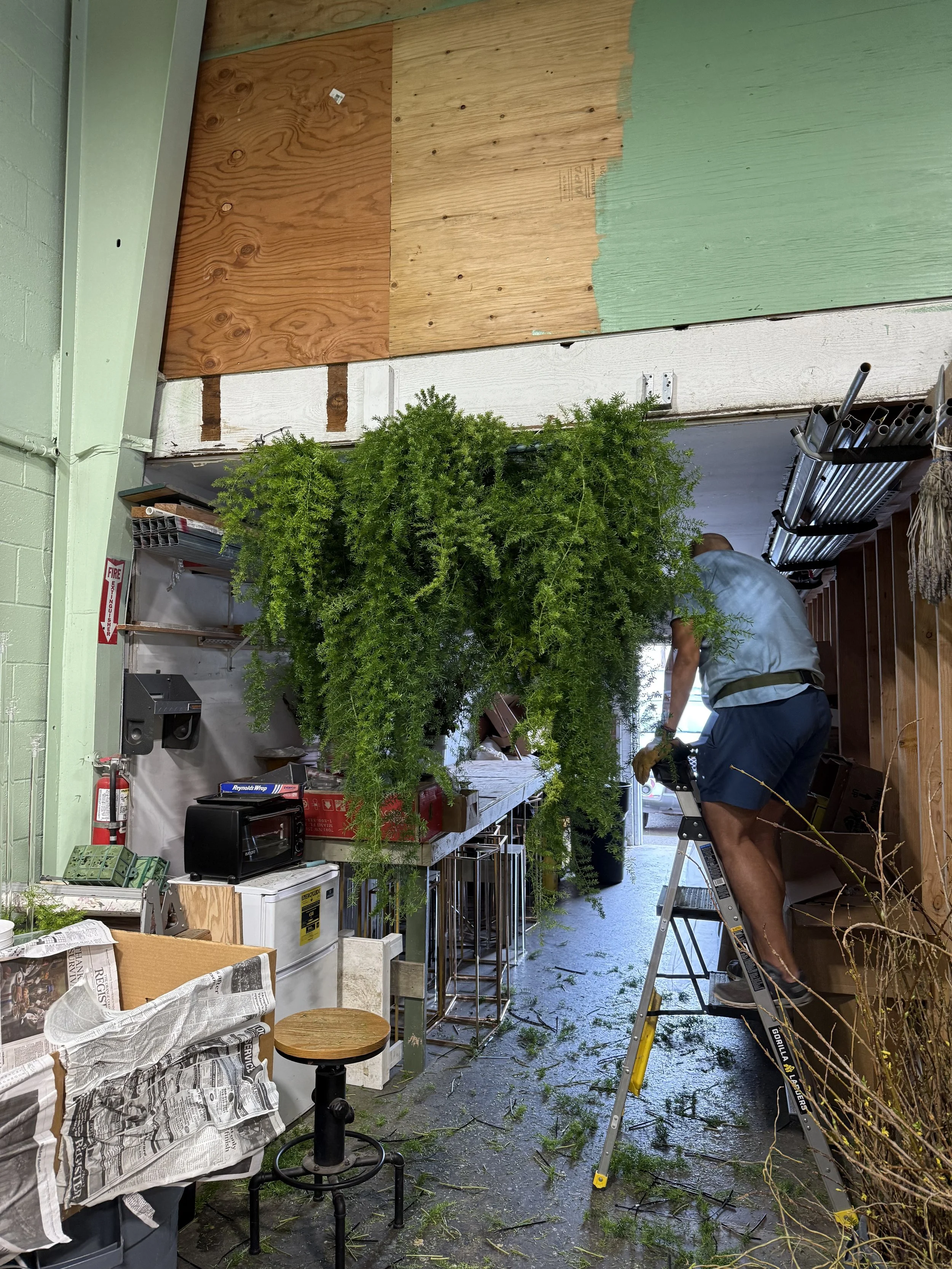 We could have probably used existing frames, but what’s the fun in that? We created the frames to hang greenery on to fit the perfect size in the tent.