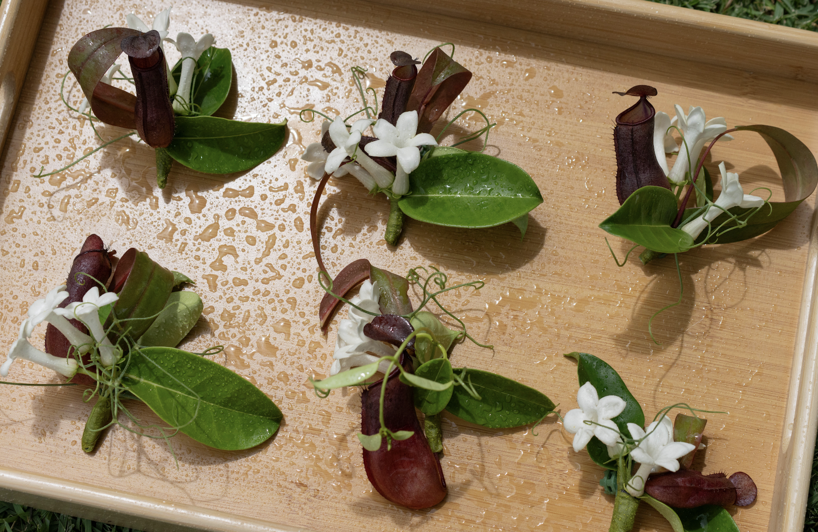 For our groom, a local Japanese fisherman, we wanted to incorporate something fishing-related. The pitcher plant felt like the perfect nod, mimicking a takotsubo: the traditional Japanese pot used to catch octopus.